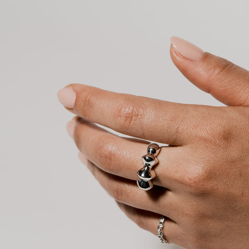 Silver will maintain a polished look if it is worn and handled every day, buffed by your skin and by the fabrics and materials that you surround yourself with. If you will be storing jewelry for an extended period of time it is recommended to keep in an air tight container to minimize oxidation. If you would like to add a little lustre a silver polishing cloth or other silver polishing compounds are recommended.